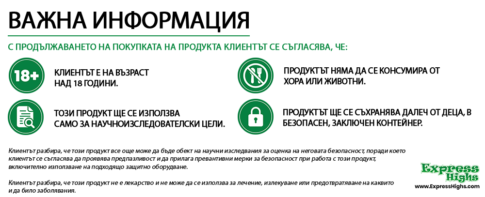 Нови видове химикали за научни изследвания ще бъдат добавени към нашия каталог в следващите няколко седмици. Германия, Австрия, Дания, Швеция, Исландия, Финландия, Норвегия - Химикалите за научни изследвания могат да бъдат изпратени до тези страни само с обикновена въздушна поща. Доставката на продукти за научни изследвания до тези страни е изключена от нашата гаранция за доставка и повторно изпращане. Всички други дестинации са обхванати и се изпращат с Fedex или DHL.