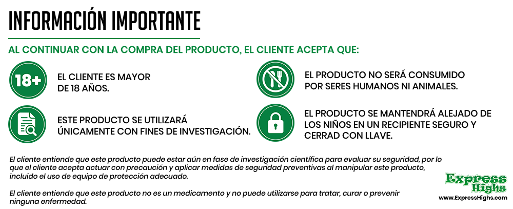 En las próximas semanas añadiremos a nuestro catálogo nuevas variedades de productos químicos de investigación.Alemania, Austria, Dinamarca, Suecia, Islandia, Finlandia, Noruega: los productos químicos para investigación solo se pueden enviar a estos países mediante correo aéreo regular. La entrega de productos de Research Chemical a estos países está exenta de nuestra garantía de entrega y reenvío. Todos los demás destinos están cubiertos y enviados con Fedex o DHL