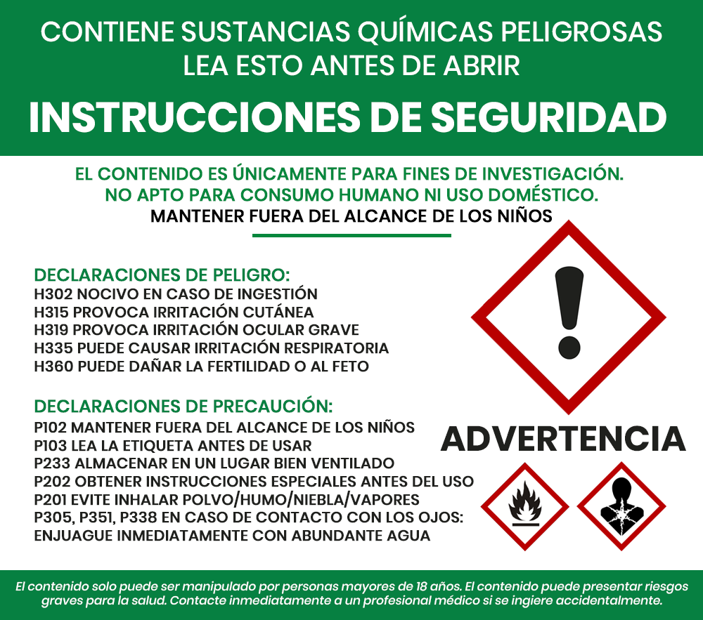 En las próximas semanas añadiremos una nueva variedad de productos químicos para investigación a nuestro catálogo. Alemania, Austria, Dinamarca, Suecia, Islandia, Finlandia, Noruega: los productos químicos para investigación solo se pueden enviar a estos países mediante correo aéreo ordinario. La entrega de productos químicos para investigación a estos países está exenta de nuestra garantía de entrega y reenvío. Todos los demás destinos están cubiertos y se envían con Fedex o DHL. Este producto no se puede enviar directamente al Reino Unido. Consulte este enlace para saber cómo realizar compras desde lugares que no están disponibles para la entrega directa.