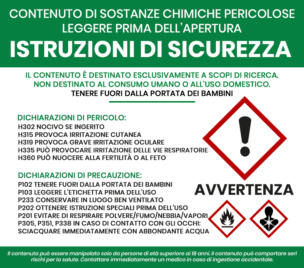 I prodotti chimici di ricerca non sono destinati al consumo umano e devono essere utilizzati solo sotto la supervisione di uno scienziato qualificato.