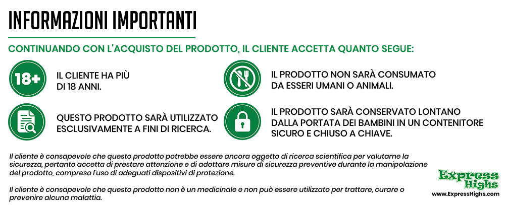 Allemagne, Autriche, Danemark, Suède, Islande, Finlande, Norvège - Les produits chimiques de recherche ne peuvent être expédiés vers ces pays qu'en utilisant la poste aérienne régulière. La spedizione di prodotti chimici di ricerca dans ces pays è esente da notre garantie de livraison et de réexpédition. Tutte le altre destinazioni sono coperte e spedite con Fedex o DHL.