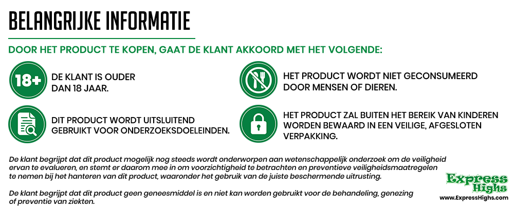 De komende weken zullen er nieuwe soorten Research Chemicals aan onze catalogus worden toegevoegd. Duitsland, Oostenrijk, Denemarken, Zweden, IJsland, Finland, Noorwegen - Research Chemicals kunnen alleen naar deze landen worden verzonden via gewone luchtpost. De levering van Research Chemical-producten naar deze landen is uitgesloten van onze leverings- en herverzendingsgarantie. Alle andere bestemmingen worden gedekt en verzonden met Fedex of DHL.